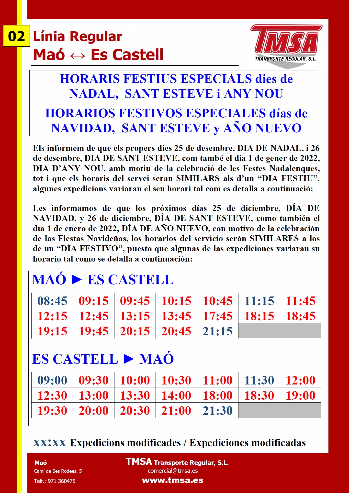 Esta ampliación en la línea L92, comporta un cambio de horarios en la línea L03 Maó - Sant Lluís también a partir del viernes 15 de abril.