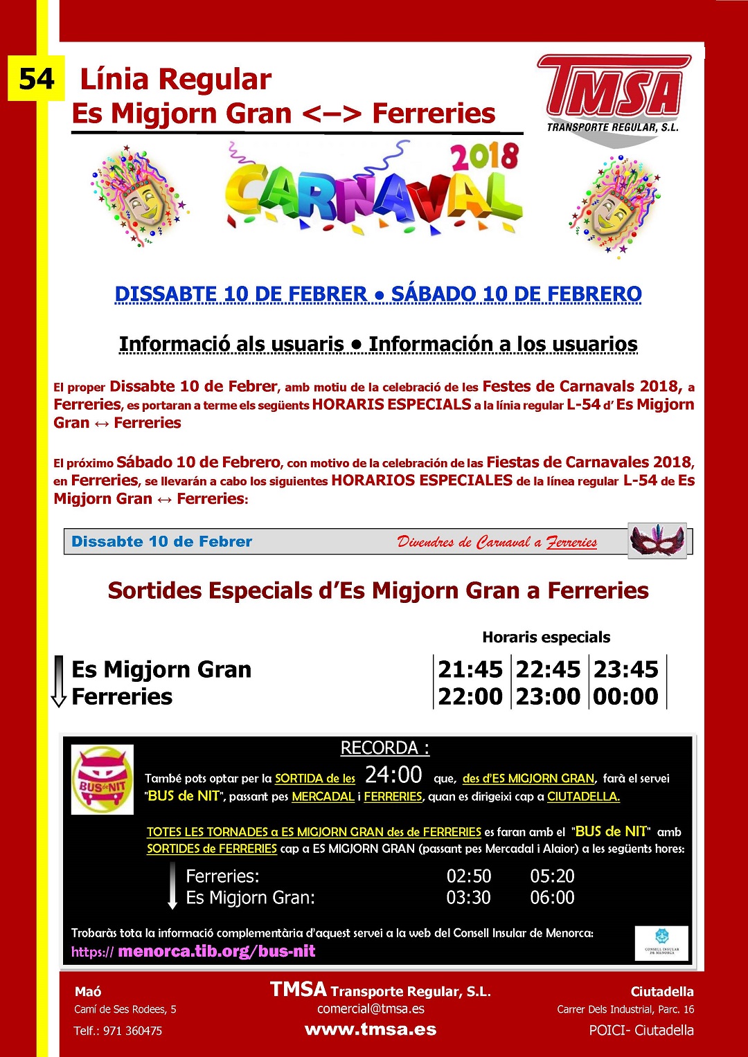 A partir del dia 17-02-2018 algunas expediciones de Maó a Sant Lluis y de Sant Lluis a Maó se verán afectadas de los siguientes cambios: