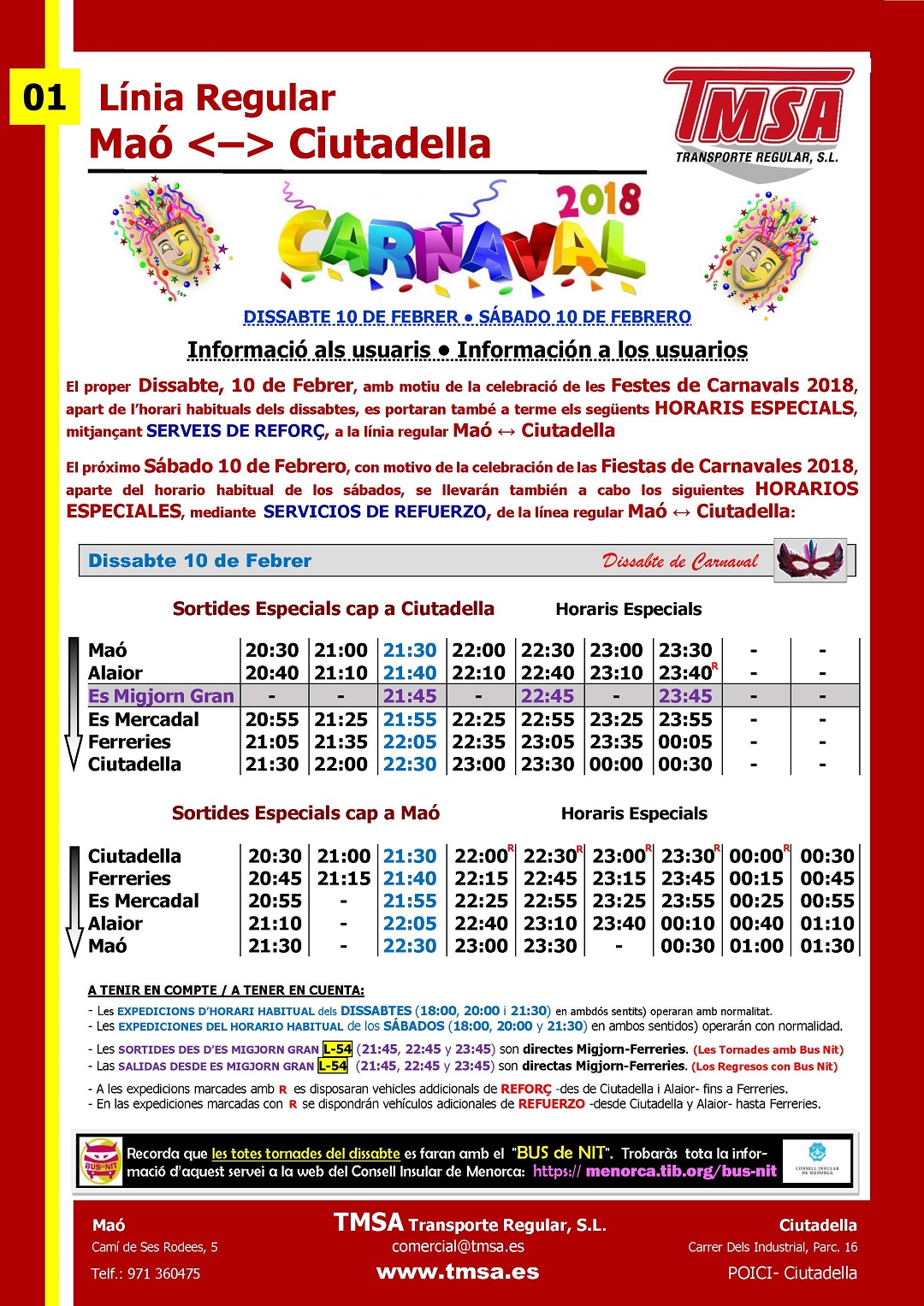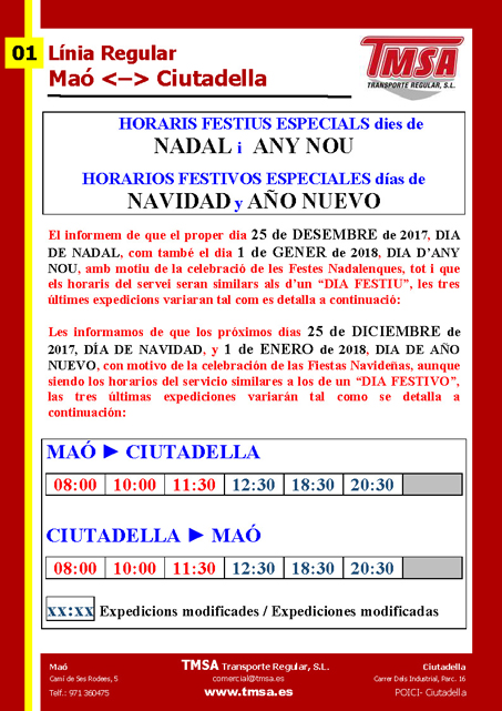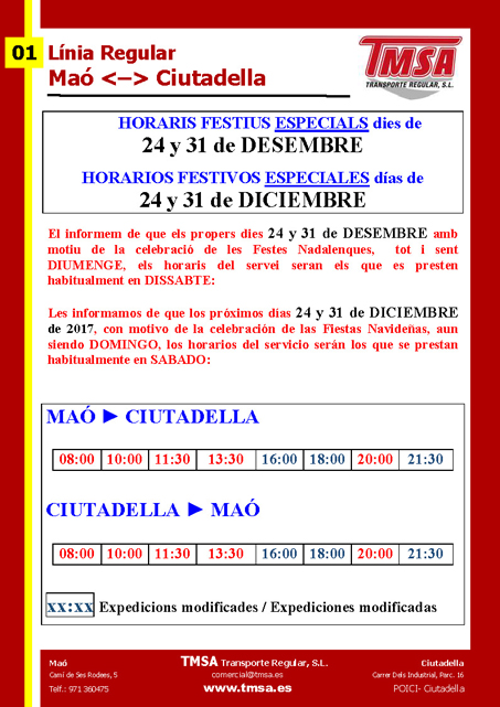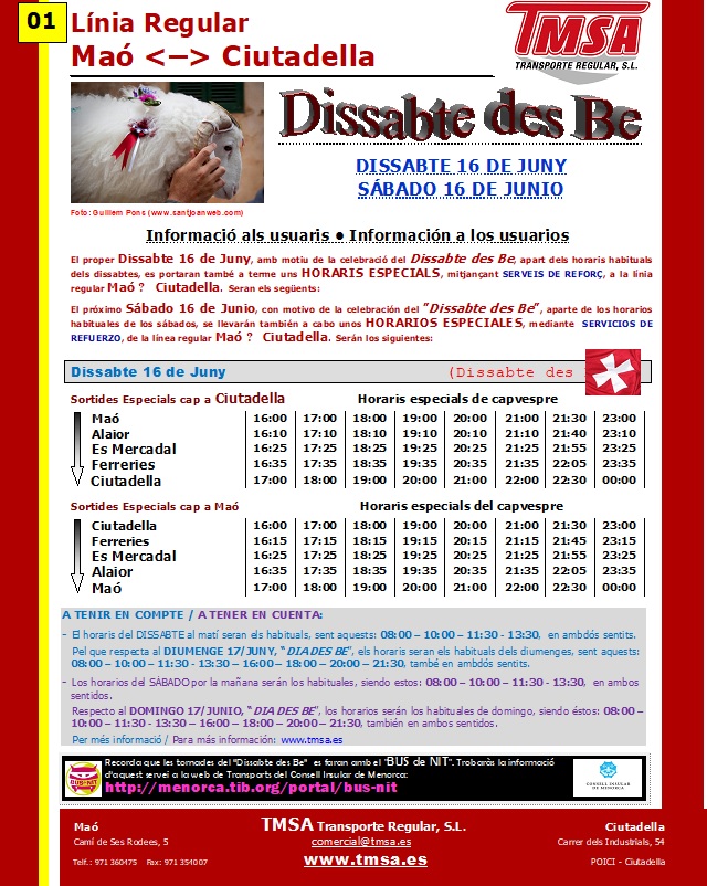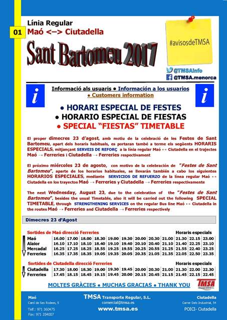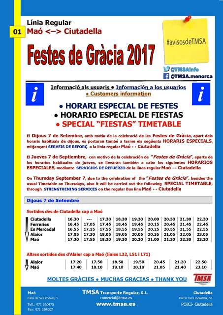 Mañana, VIERNES 1 de JUNIO, iniciamos la prestación de los HORARIOS DE TEMPORADA ALTA DE VERANO.