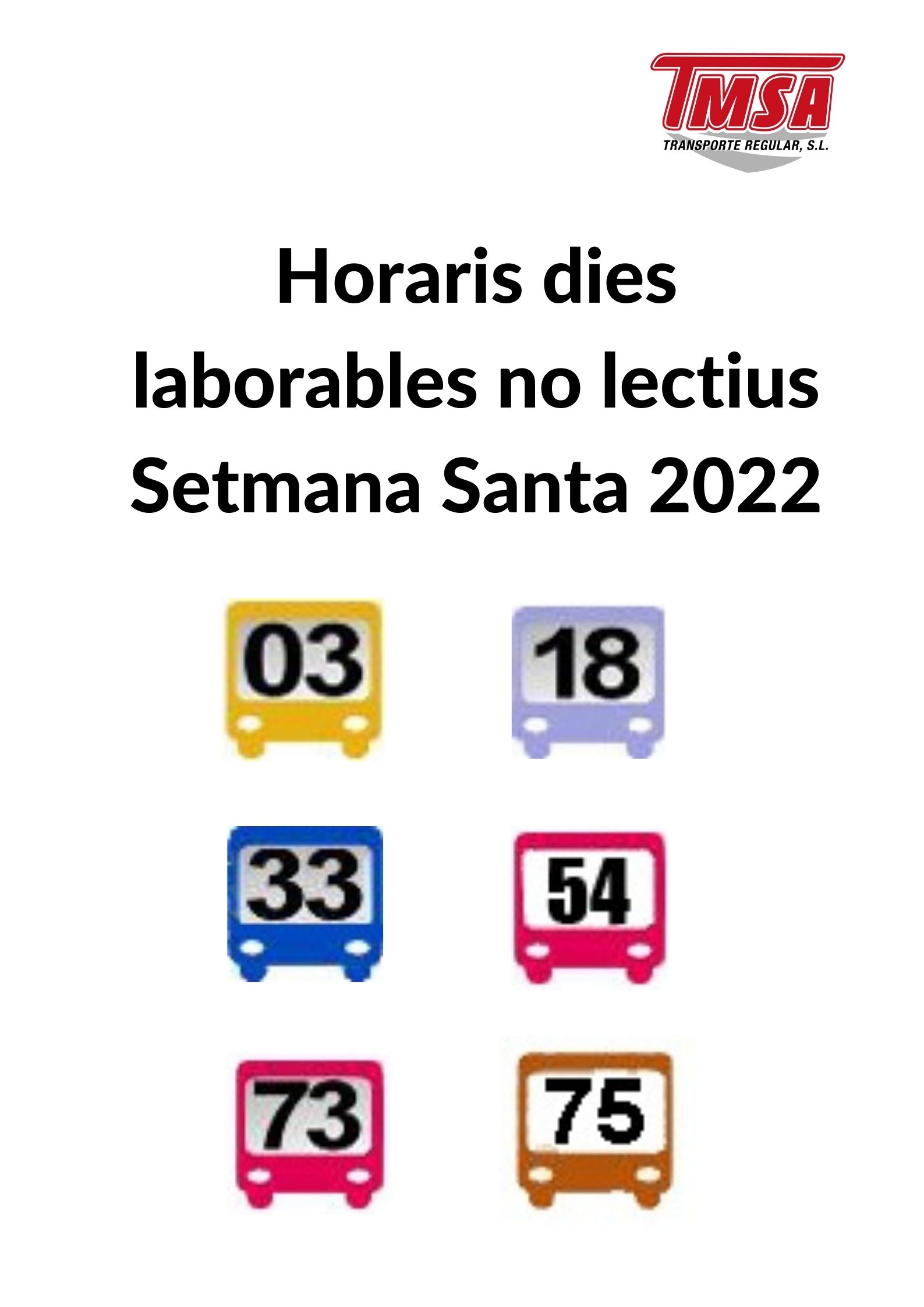 Los próximos días jueves 14, viernes 15 y lunes 18 de abril son días festivos, por lo que TODOS LOS HORARIOS de TODAS NUESTRAS LÍNEAS serán los correspondientes a DOMINGOS Y FESTIVOS.