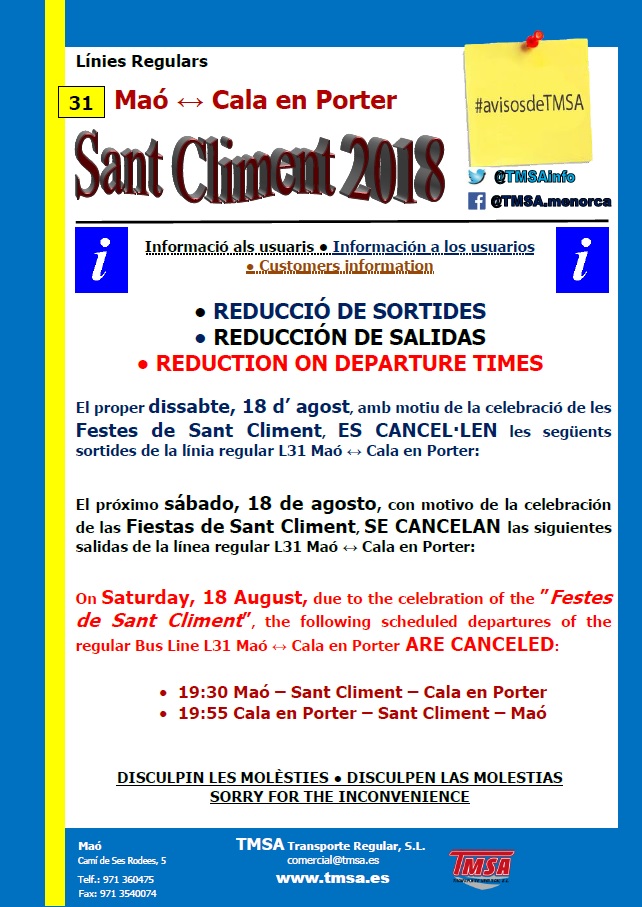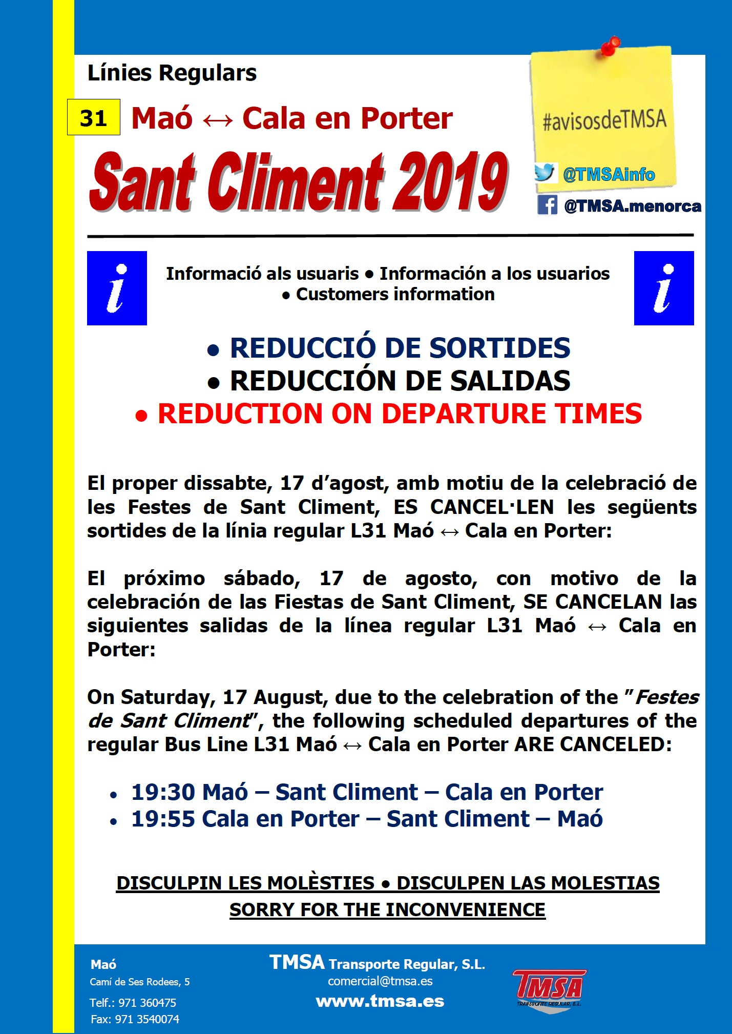 Línea L31 Maó - Sant Climent - Cala en Porter: