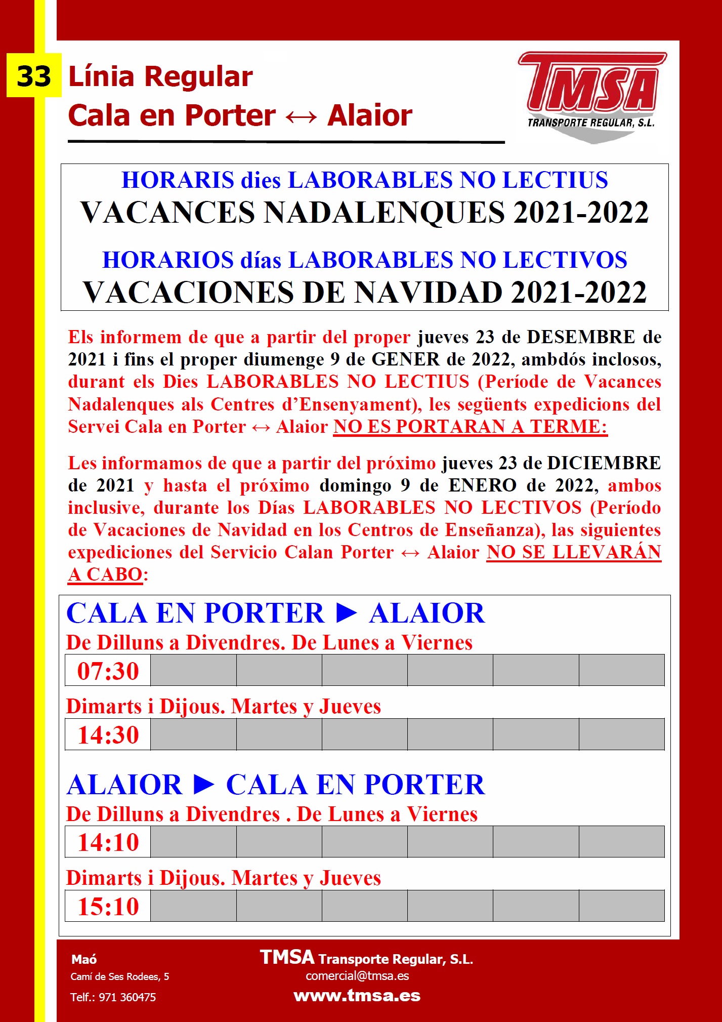 - L03 Maó - Sant Lluís, se añaden dos nuevas expediciones, una en cada sentido, que solo se prestarán de Lunes a Viernes DIAS LECTIVOS.