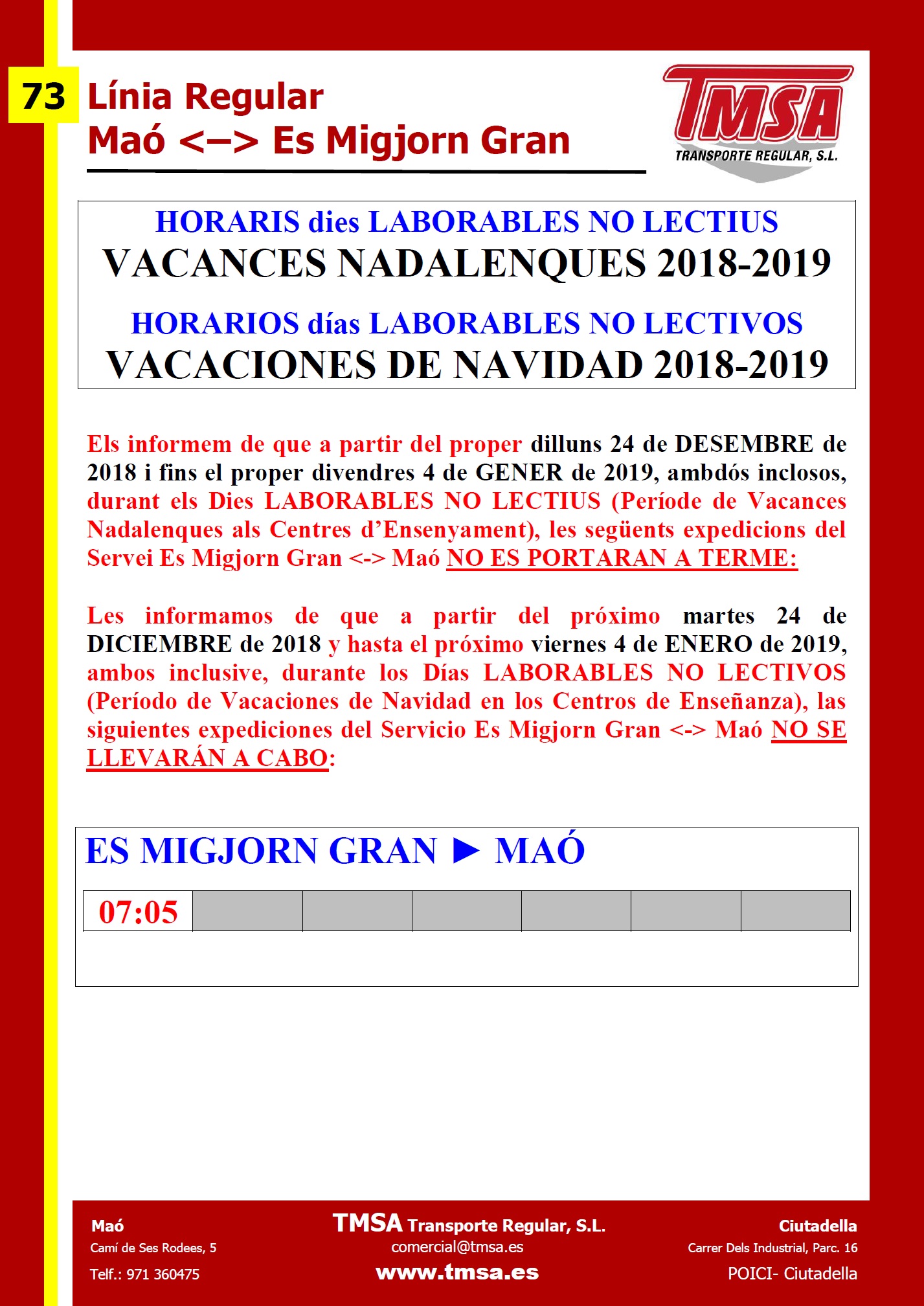 Algunas de las líneas que ya estaban operativas, pueden sufrir cambios en los horarios de algunas de sus expediciones, como ocurre en las líneas L03 Maó – Sant Lluís, L21 Maó – Sant Climent, L31 Maó – Cala en Porter, L73 Maó – Es Migjorn Gran, L91 Maó – Alcalfar – S’Algar y L92 Maó – Sant Lluís – Punta Prima.