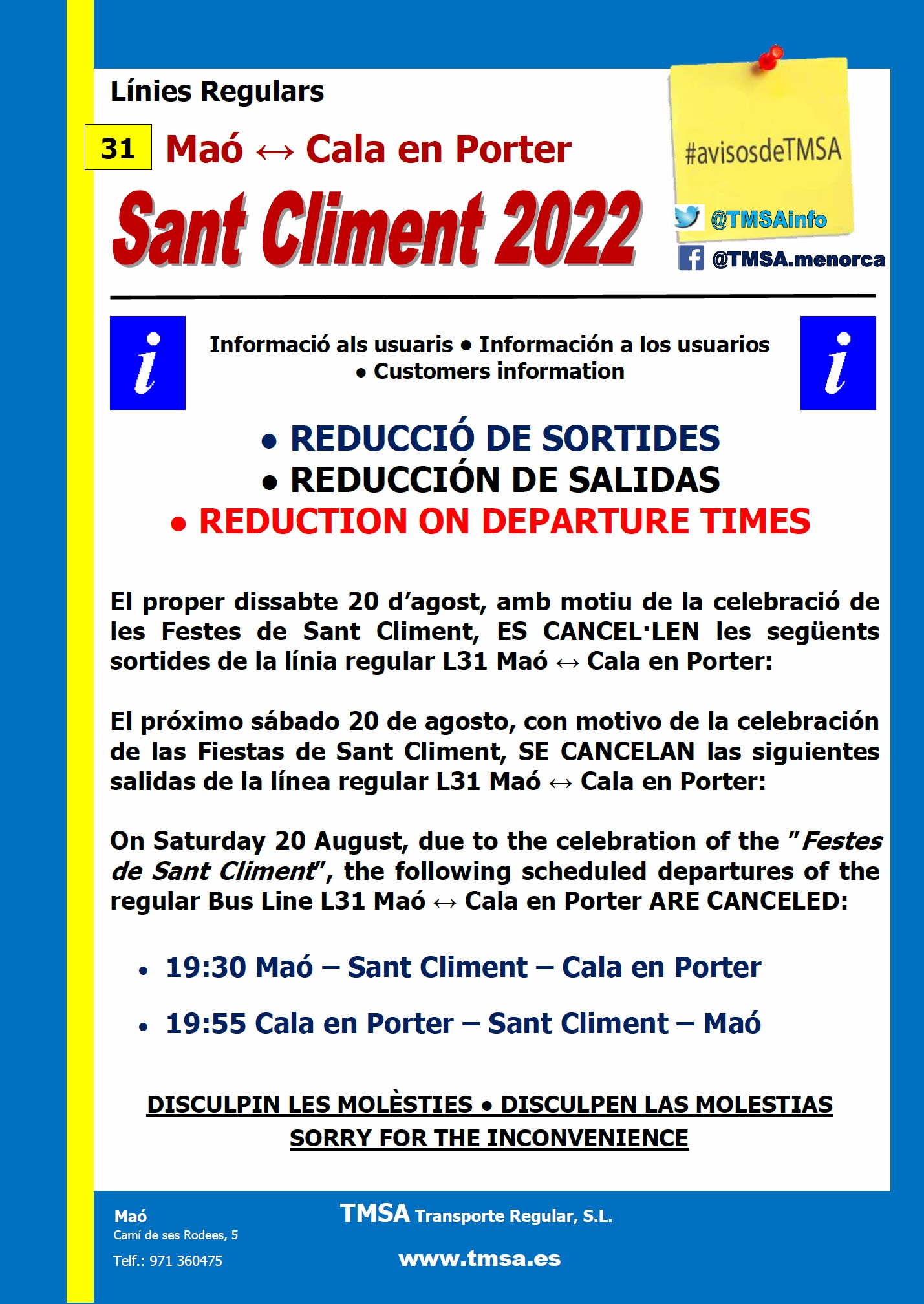 Línea L31 Maó - Sant Climent - Cala en Porter: