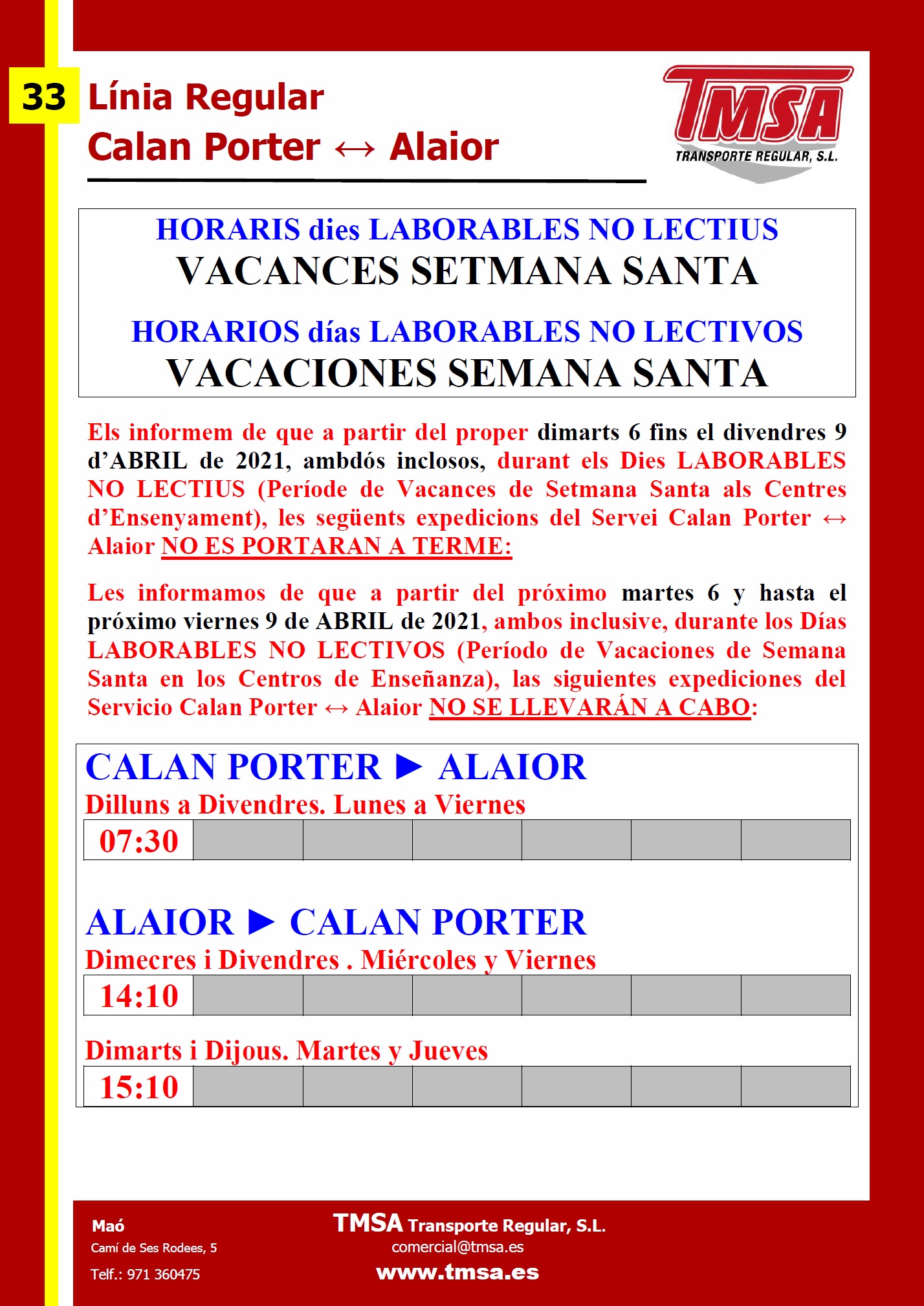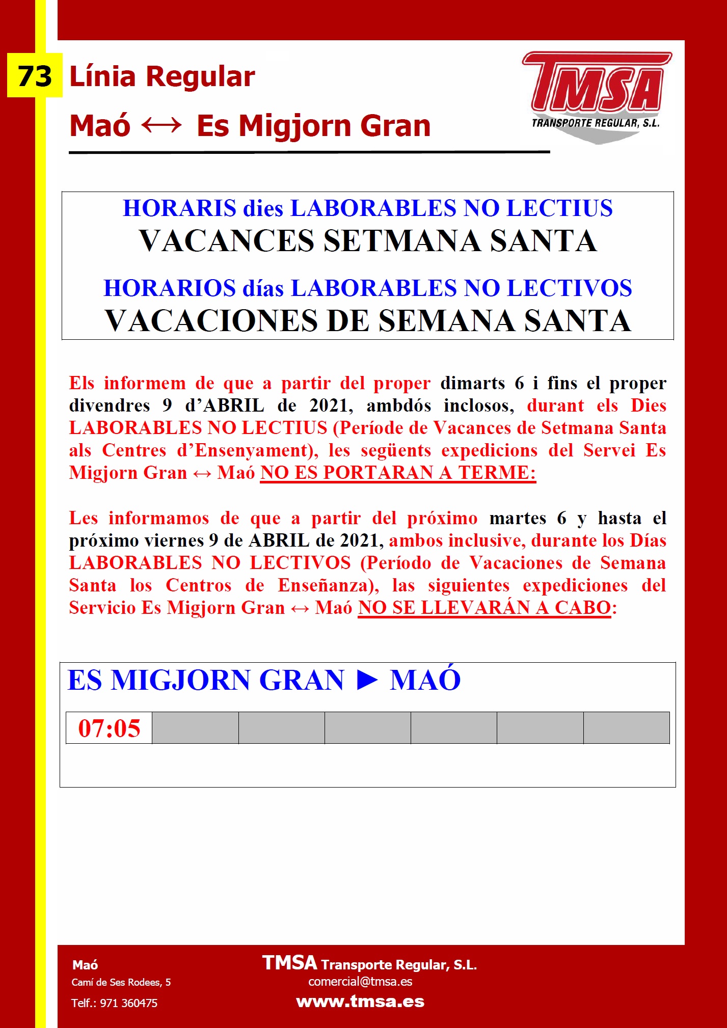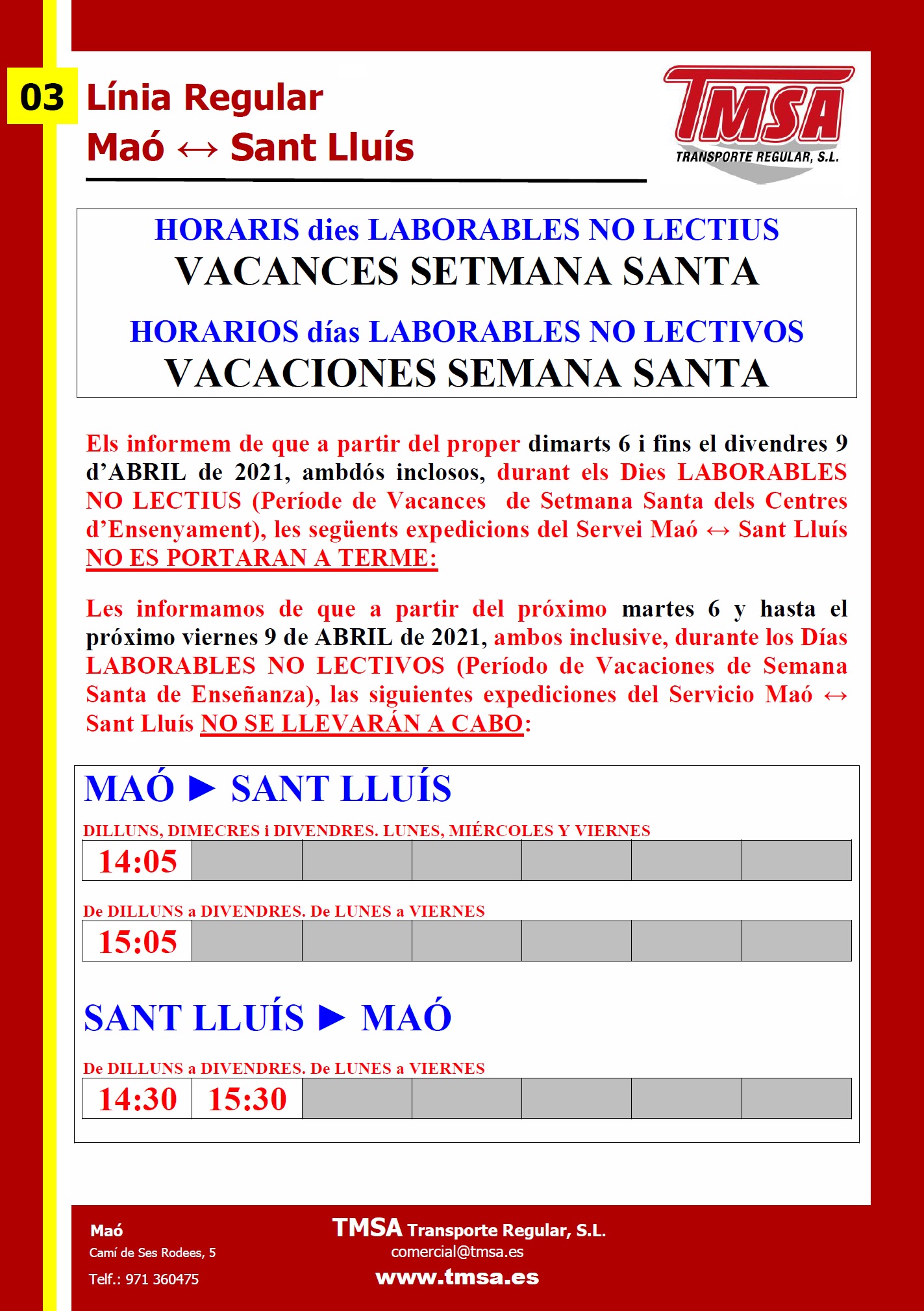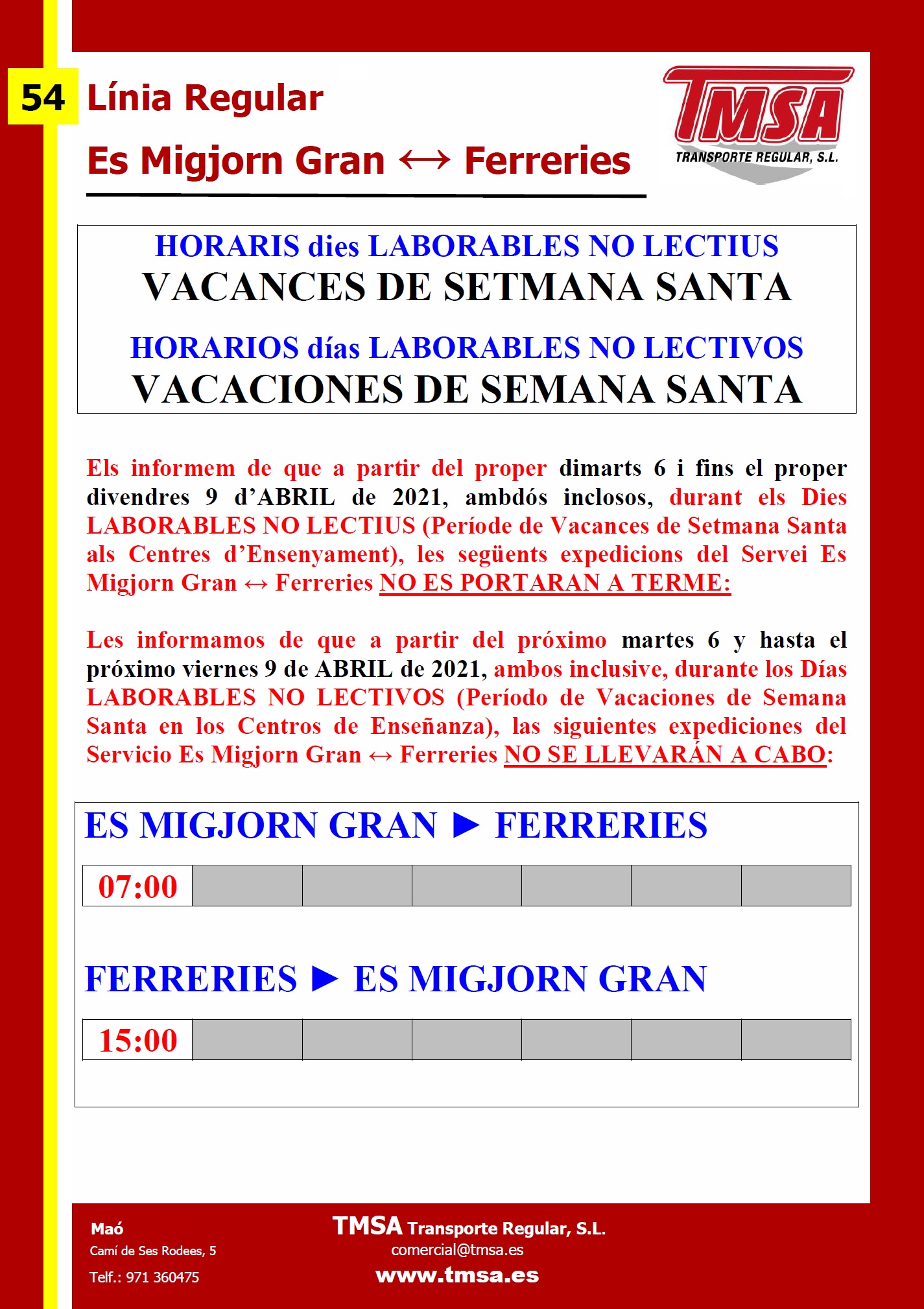 Les informamos de que los próximos días 25 de diciembre, DÍA DE NAVIDAD, y 26 de diciembre, DÍA DE SAN ESTEBAN, como también el día 1 de enero de 2021, DÍA DE AÑO NUEVO, con motivo de la celebración de las Fiestas Navideñas, aun siendo los horarios del servicio SIMILARES a los de un “DÍA FESTIVO”, algunas de las expediciones verán modificado su horario.