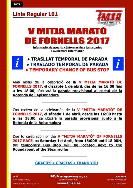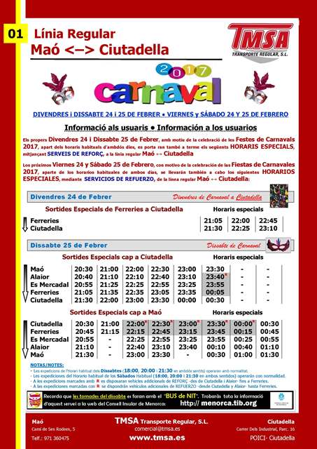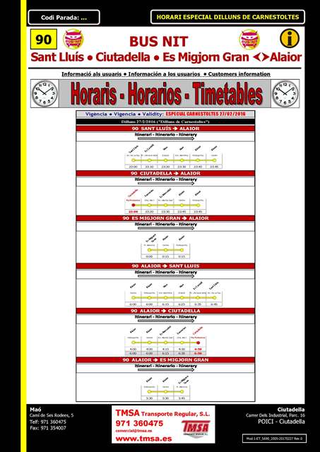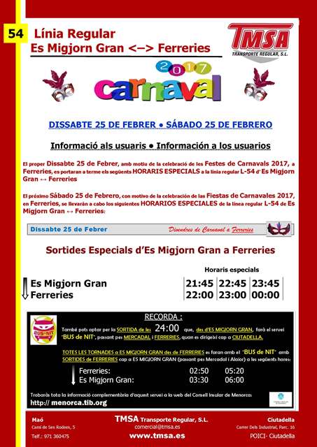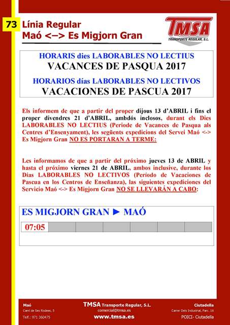 A partir del día 16-02-2017 algunas expediciones de Maó a Sant Lluis y de Sant Lluis a Maó se verán afectadas de los siguientes cambios: