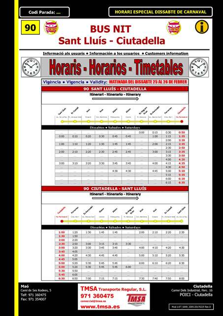 Maó -> Sant Lluis (de lunes a domingos):